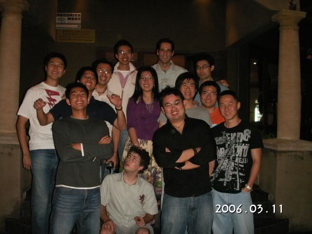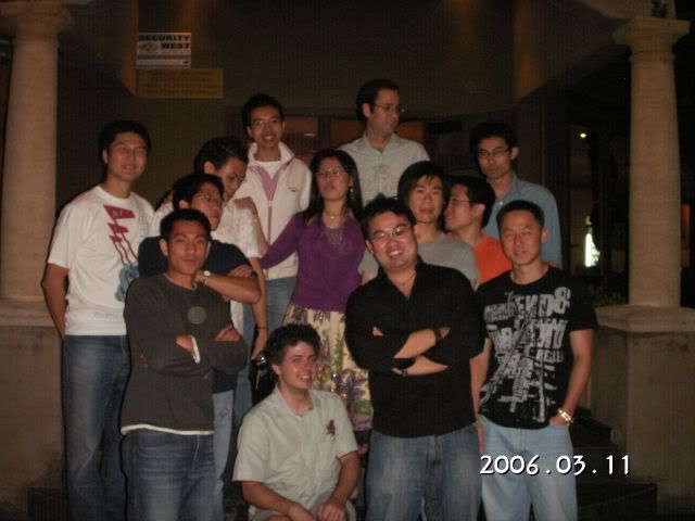 Group photo!!! The waiter stood too far!! Argh!!! And the flash wasn't THAT strong so I had to play with Photoshop, but because I'm an amateur, it still didn't turn out right. Perhaps Carl can help!? =)